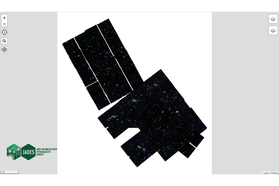 Om de JWST tot zijn uiterste limieten te pushen, ontwikkelden astronomen een speciaal observatieprogramma: het JWST Advanced Deep Extragalactic Survey, of JADES. Het programma neemt een piepklein deeltje van de hemel in het vizier en houdt dat vervolgens heel lang in de gaten. Zo verkrijgen wetenschappers zogeheten deep field-beelden van bijzonder verafgelegen hemellichamen en andere -objecten.