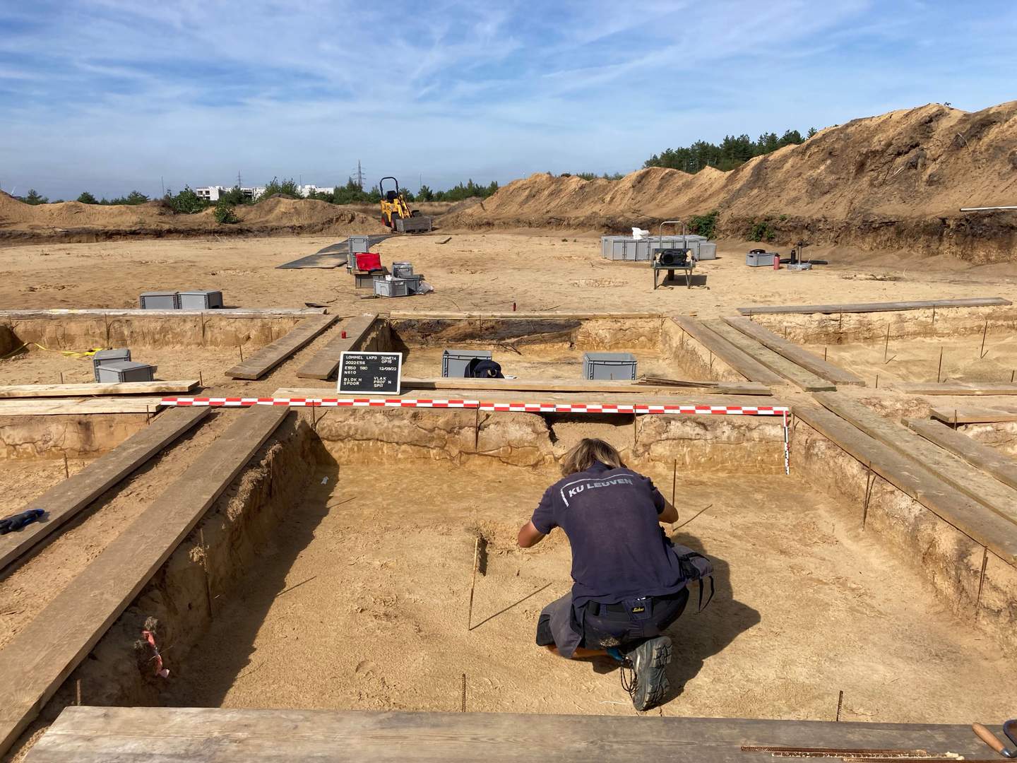 Sleuven van ongeveer een meter diep liggen tussen bergen van lichtgeel en -grijs zand. Erin en errond zijn enkele archeologen van de KU Leuven aan het werk. Het zijn hun laatste activiteiten op deze site, gelegen op een licht glooiende vlakte in Lommel, op wat geologen het Kempens Plateau noemen. De omgeving oogt typisch Kempisch: mulle zand en heide wisselen zich af, met hier en daar een stukje dennenbos. Maar aan de andere kant van de site is er een andere vorm van bedrijvigheid: er wordt naarstig gewerkt aan een nieuwe grote glasfabriek. De archeologische site ligt dan ook op een bedrijventerrein. Toen dat begin deze eeuw werd uitgebreid, startte de KU Leuven er preventief archeologisch onderzoek. Want al sinds decennia is geweten dat hier archeologische sporen liggen die teruggaan tot in de prehistorie. Lang werd de site als mesolithisch beschouwd, daterend uit de periode tussen het einde van de ijstijd en het begin van de landbouw - het neolithicum. Maar recenter bleken er zich ook sporen te bevinden uit een oudere periode, meer bepaald uit een bijzonder millennium, namelijk dat van 14.000 tot 13.000 jaar geleden.