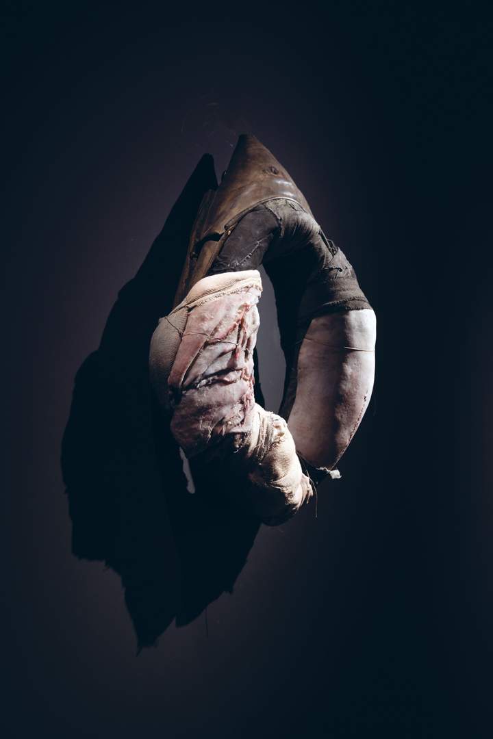 Kunstenaar Berlinde De Bruyckere contrasteert in ‘Met tere huid’ de harde, ruwe textuur van een lederen paardenjuk met vleesachtige was en beschermende dekens in huidtinten. Het roept de dualiteit op van het mannelijke versus het vrouwelijke.