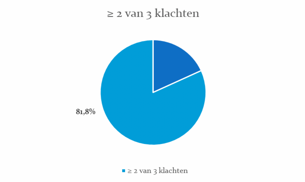 De klachten waarmee je te maken krijgt als je besmet bent en ziek wordt, zijn in de meeste gevallen hoest of ademhalingsmoeilijkheden, koorts of een koortsig gevoel, en spierpijn. 45,5 procent van de in het UZ Gent geteste patiënten had een combinatie van deze drie symptomen. 81,8 procent had last van twee van de drie.