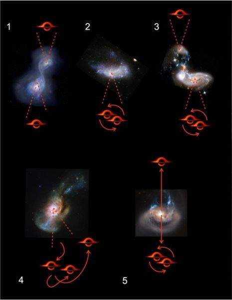 Wetenschappers weten al lang dat twee sterrenstelsels kunnen botsen en samensmelten tot één groter stelsel. Wanneer dat gebeurt, komen de zwarte gaten in de centra van die stelsels gevaarlijk dicht bij elkaar te liggen.